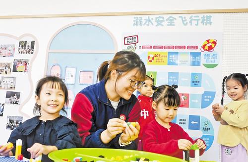 一旁,中班老师刘玲玲一边体验游戏,一边认真记录。“最近总听家长说孩子们特别喜欢来这里,我也专门来看看。把安全教育融入游戏,确实非常吸引孩子。”