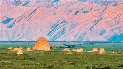 背靠贺兰山,霞光中的世界遗产西夏陵雄伟壮丽。 |