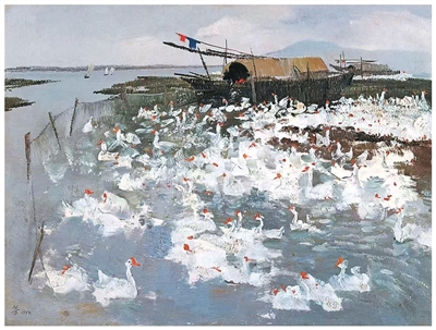 太湖鹅群(油画)