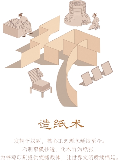 取原材于自然,精技艺于百代。创人之所未有,泽被五洲四海——造纸术,这项中国古人“顺天造物”智慧孕育出的伟大发明,从最朴实的材料中造就便于文字书写的纸张,让浩瀚的中华文明传承千年,绵延不绝。这一东方智慧跨越山海,惠及世界,至今仍深深嵌入人们的日常生活,影响着世界文明的发展。