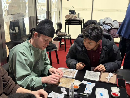 来自土库曼斯坦的明月在上海学习生活近三年,她告诉记者自己已经参加过两次迎新春活动。“这次迎新春的非遗拓印活动很特别,我们之前都没有接触过,自己动手很有成就感!”