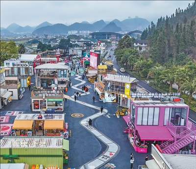 该文旅集市以“山地潮玩+布依文化+沉浸消费”为亮点,将自然景观、地域文化与旅游消费相结合,挖掘新场景、开发新业态,以特色文化体验吸引八方游客。