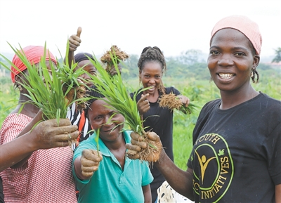 在位于阿布贾的中国援尼日利亚农业技术示范中心,当地员工展示秧苗。 |