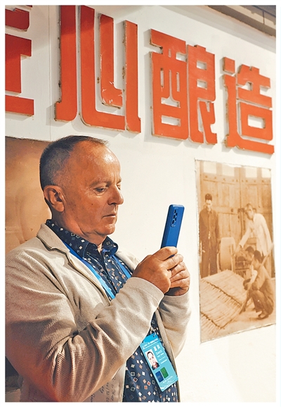 在山西汾阳汾酒博物馆内,采访团成员拍照记录。 |