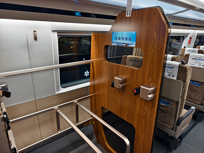 北京局集团公司客运部相关负责人介绍,铁路部门积极适应旅客多样化的出行需求,为携带雪具出行的旅客提供便捷服务。前期,铁路部门按照《国铁集团铁路旅客运输规程》“旅客乘坐动车组列车随身携带的行李物品长、宽、高之和不超过130厘米”的规定,对超过上述尺寸标准的雪具推出了“雪具快运”服务。为了更好满足旅客与雪具随车同行的需求,铁路部门统筹考虑旅客安全、乘车秩序和雪具运输需求,选取京张高铁北京北至崇礼间的G7831/2/3/4/5/6/7/8次列车试点开展“雪具便利行”服务,对动车组列车二等座车厢部分座椅进行了适应性改造,设置专门的“雪具存放处”,旅客选择该服务后可携带长、宽、高之和不超过200厘米的雪具同车出行,滑雪更加方便快捷。对于长、宽、高之和超过200厘米的雪具,由于高铁列车车内空间限制,仍需办理托运。